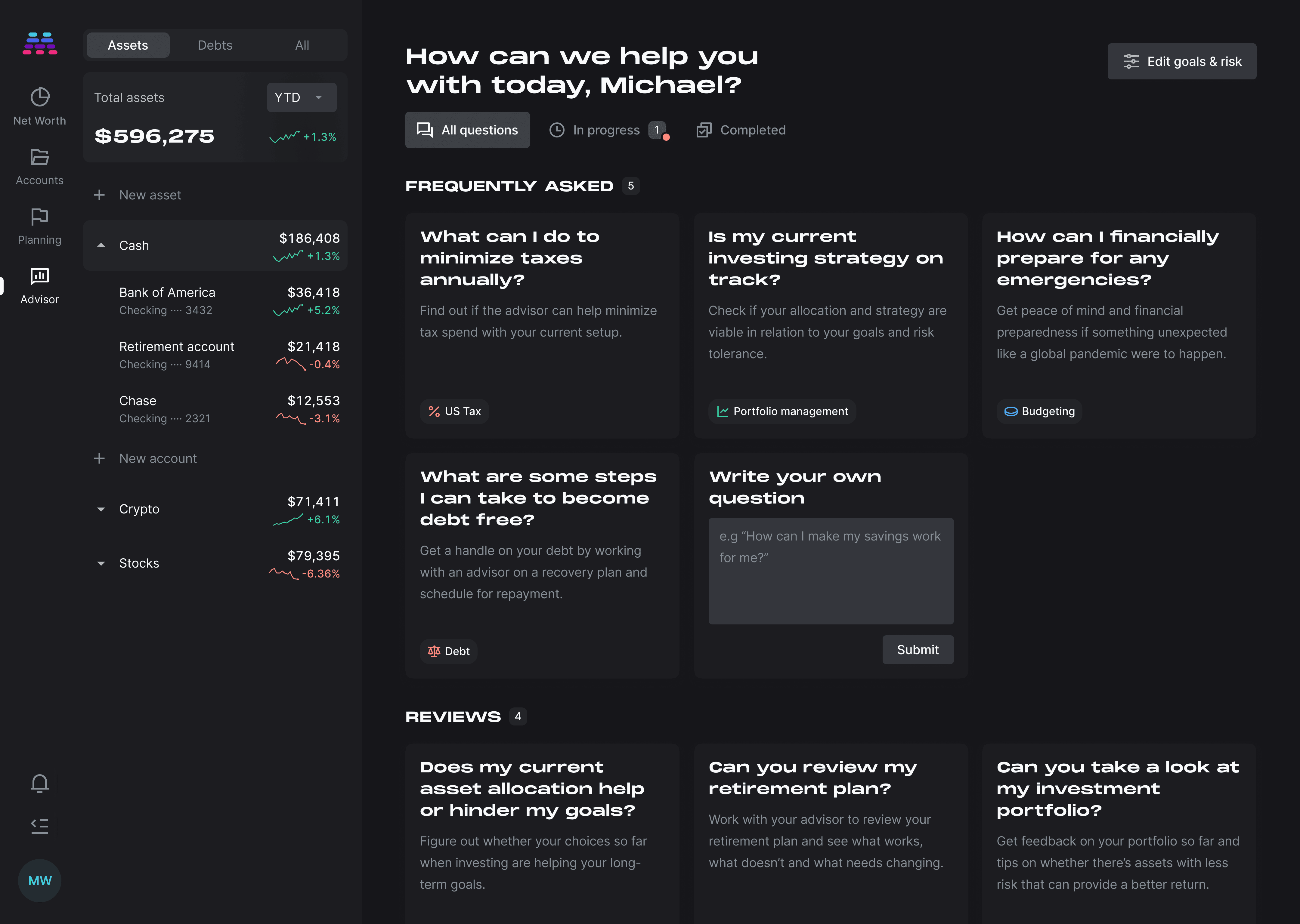 This feature was met with a lot of positive feedback with our early access users. One customer even went as far as to fire their existing advisor and switch to our service.