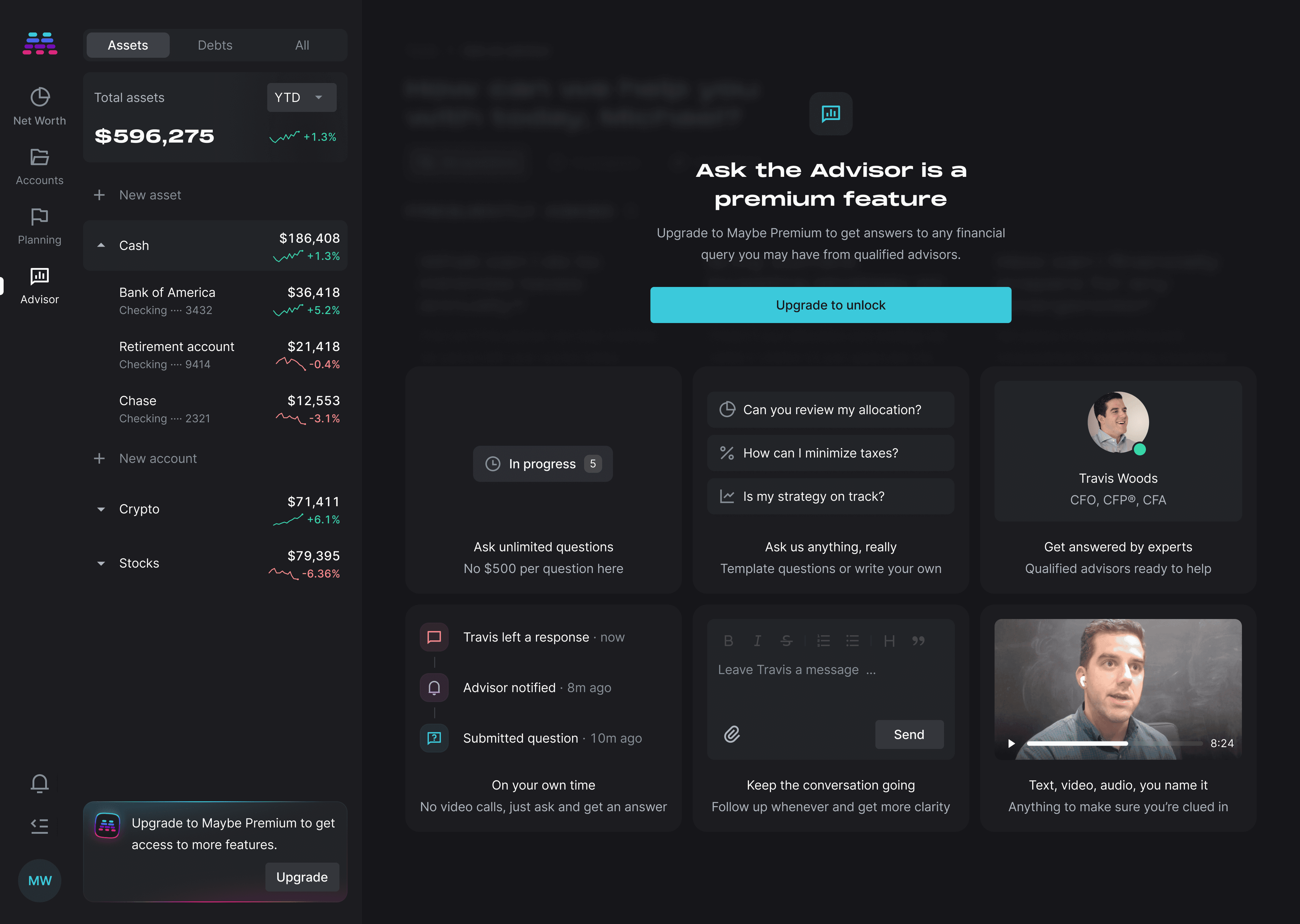Traditionally, access to a certified financial advisor had been restricted to scheduling calls and an expensive pay-per-question model.